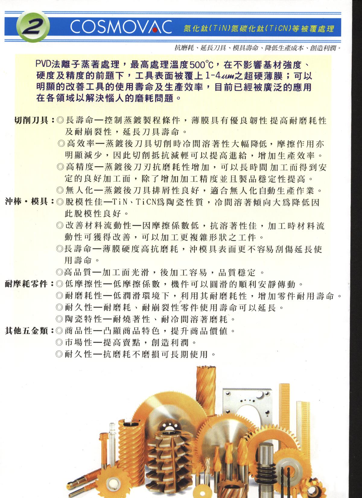 从事各种镀膜设备制造及贩卖:离子镀膜机,离子镀膜设备,离子蒸镀设备,离子涂层设备,Ion Plating,Ion plating coater,Ion plating equipment,Ion plating machine,PVD 物理蒸镀设备,HCD 中空阴极管镀膜设备,Arc 电弧式蒸镀设备,ABS蒸镀设备,UBS蒸镀设备,Sputter 溅镀设备,Arc coating machine,Arc coater
